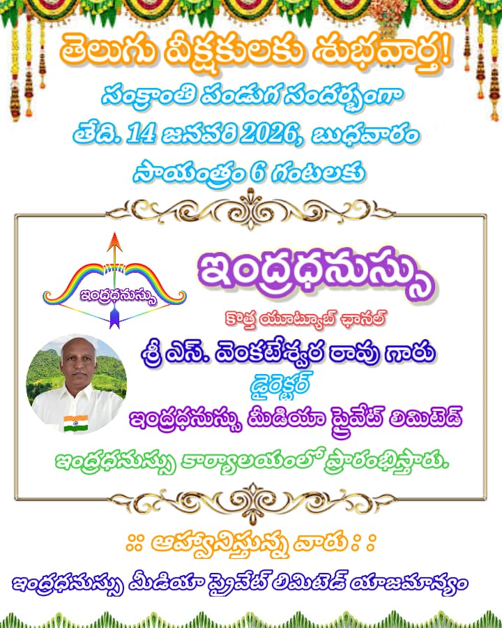 “ఇంద్రధనుస్సు” యూట్యూబ్ ఛానల్ సంక్రాంతి పండుగ రోజు రాబోతుంది!